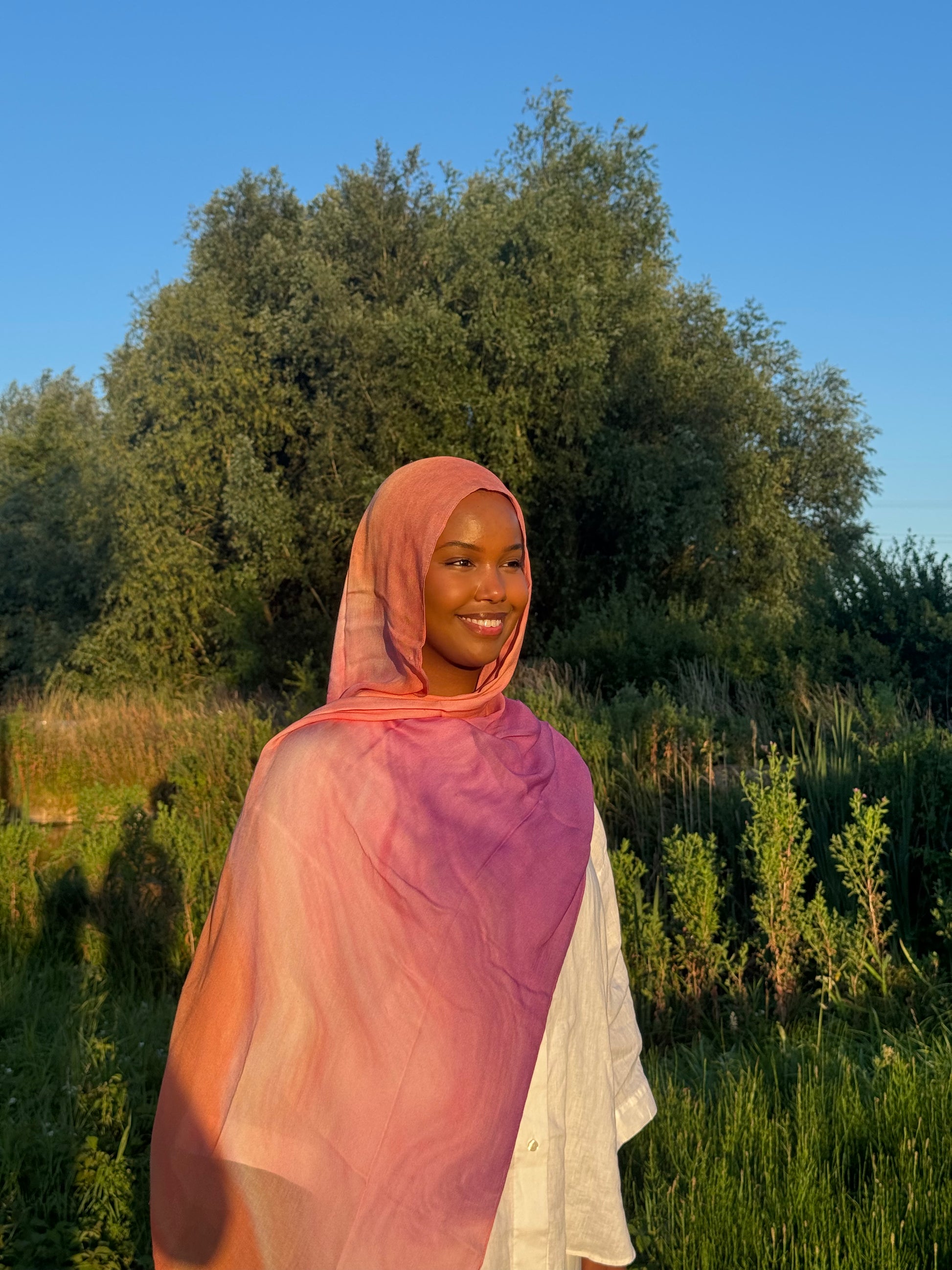 Wrap yourself in warmth with Sunset — a soft golden hue. This breathable hijab evokes the beauty of twilight by the shore, where the sky melts into honeyed tones. Let it remind you of slow evenings and glowing skin